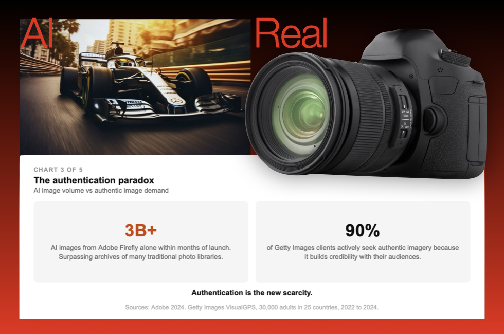 The Authentication Paradox As synthetic imagery floods the landscape, the photograph proven to have actually happened becomes the scarce asset. Authenticity is no longer a value. It is a competitive advantage.